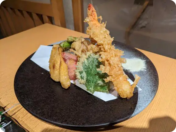 그리고 튀김 모둠(1,628엔). 이거 정말 바삭함과 안의 촉촉함을 갖춘, 제가 일본에서 먹었던 튀김 맛집 중 1위 같아요. 너무 맛있던데요. 솔직히 하나 더 주문해서 먹어보고 싶었다는.... 말씀드립니다. 다시 보니 너무 먹고 싶네요. 여러분 보시게 좋게 부가세 별도 포함해서 가격을 기재했습니다.