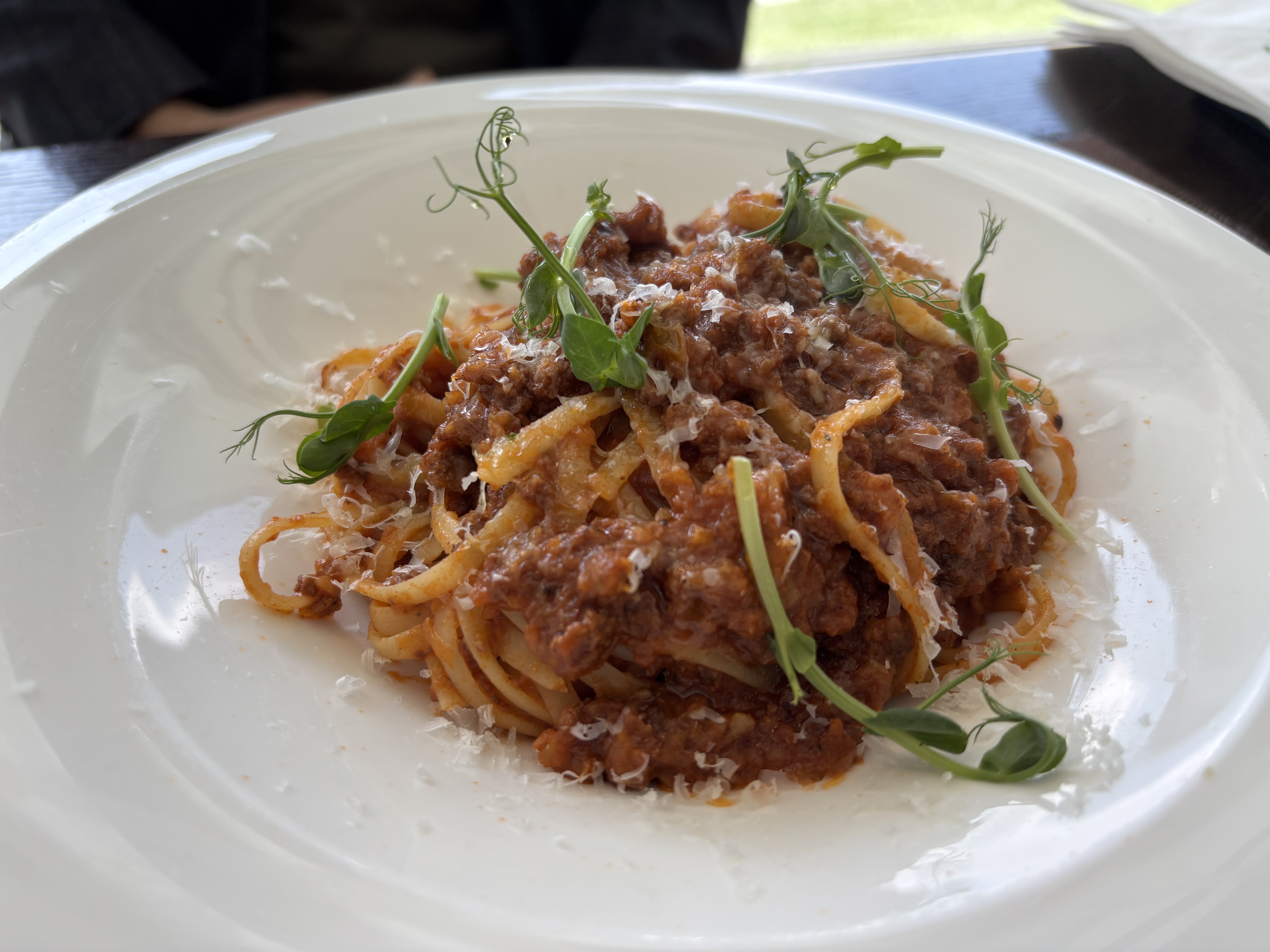 저희는 본식으로 라구 볼로레제와 관자와 아스파라거스 스파게티를 주문했는데요. 라구는 토마토소스가 기본인 거고, 관자와 아스파라거스 스파게티는 오일파스타예요. 정말 맛이 풍미가 좋았고요. 안에 젓가락으로 들쳐보시면 해물도 정말 많은데 관자가 진짜 통통해요. 싱싱하고 양도 충분히 많았어요.